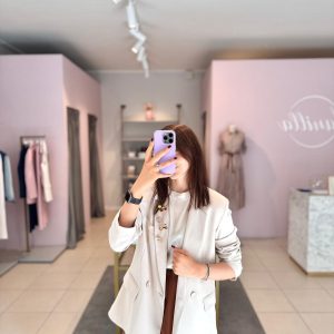 €135.00€60.00Abito in mussola leggerissima, caratterizzato da scollo V e rouches sul davanti. Manica con laccetti regolabili. Con sottoveste in 100% viscosa e fusciacchina. Color tabacco. Taglie S (38/40) e M (42/44)SM