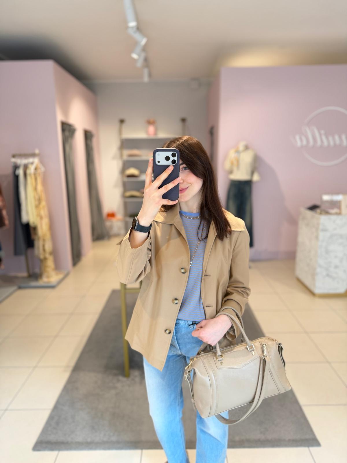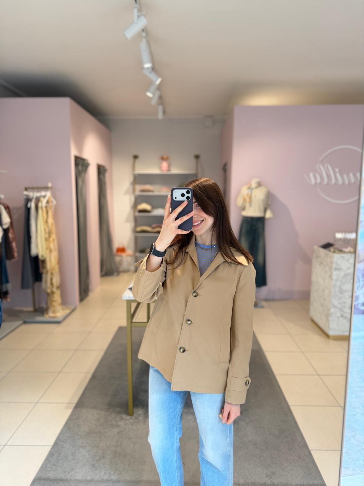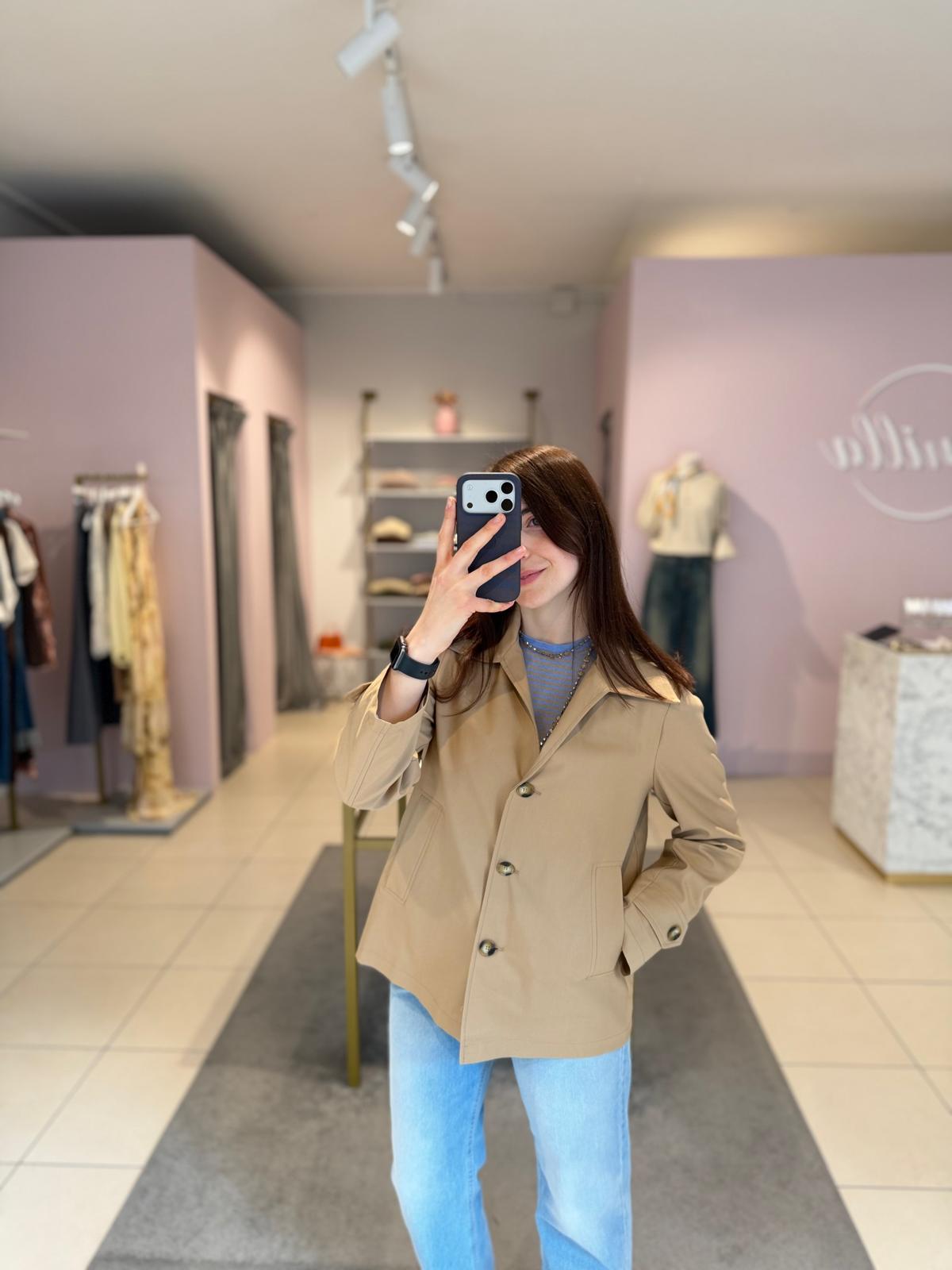 Caban in cotone interamente foderato, chiusura frontale con tre bottoni.