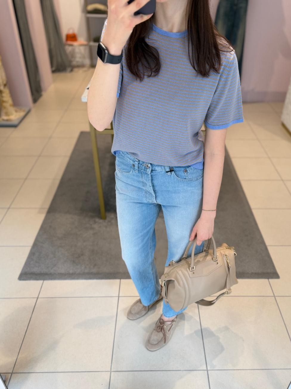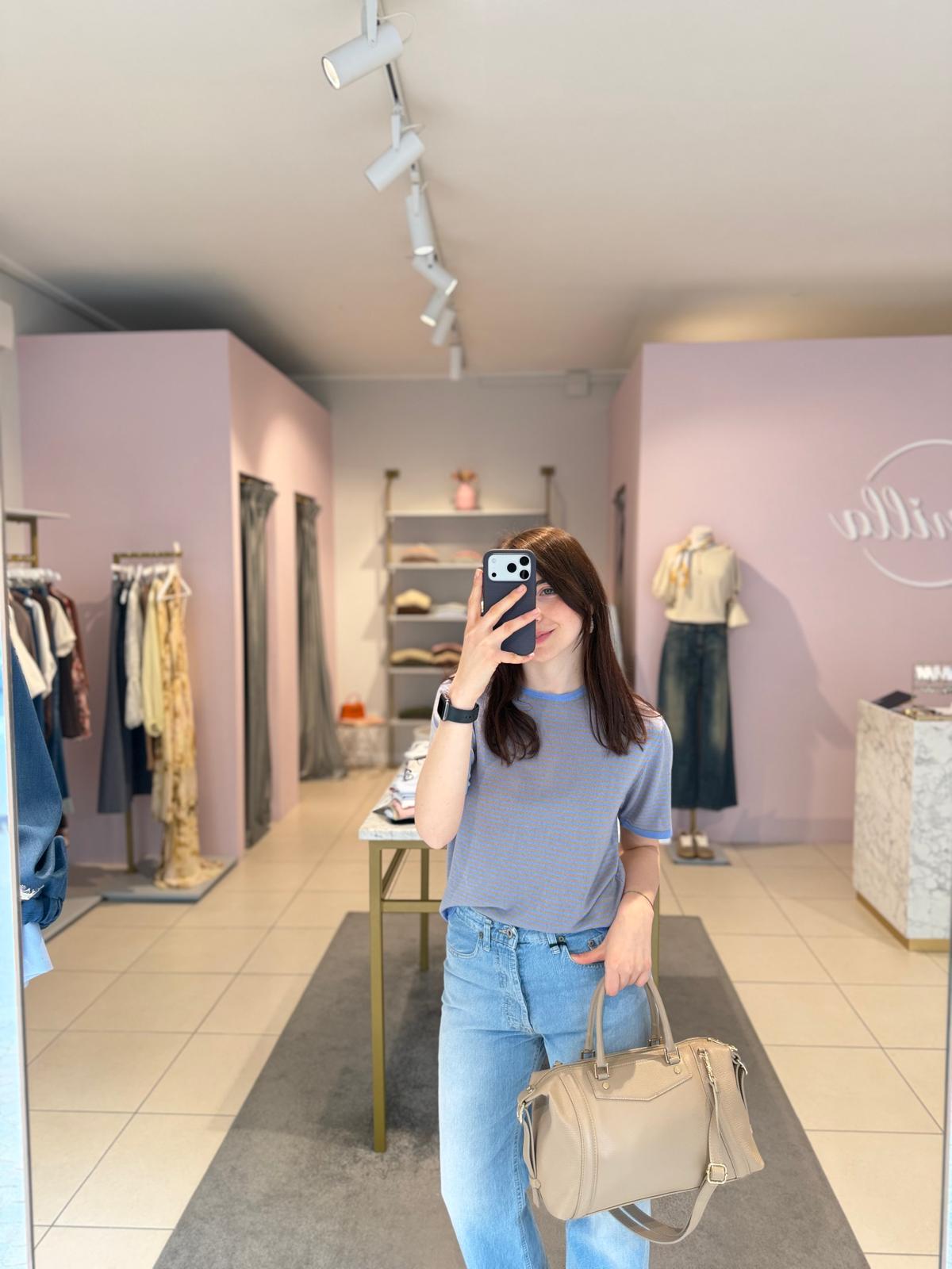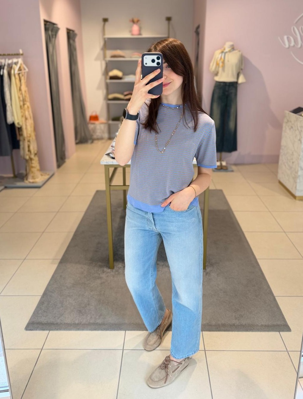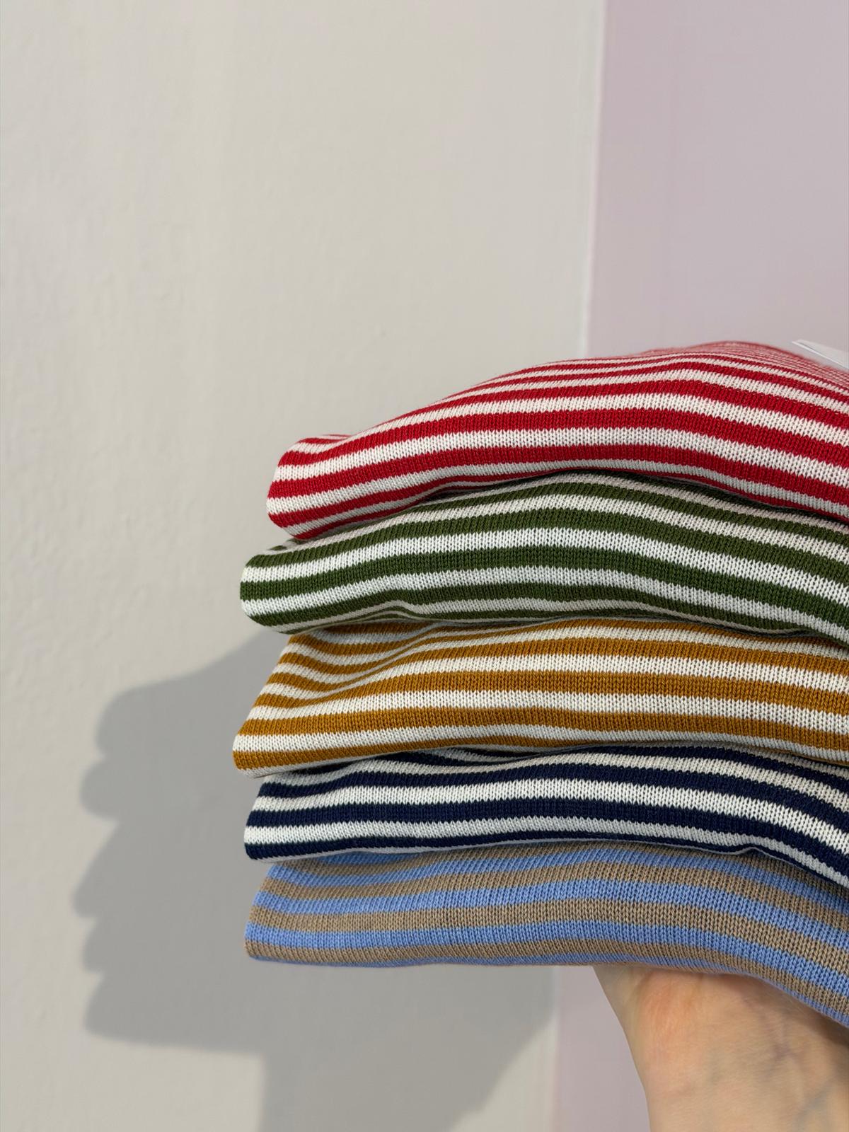 Maglia manica corta in 100% viscosa, modello dritto a righe.