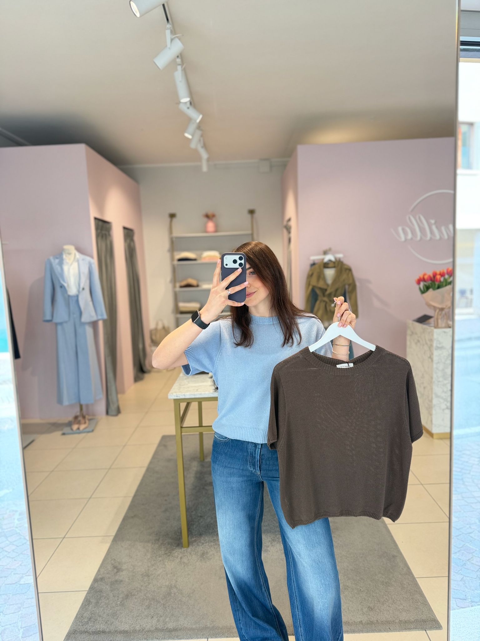 Maglioncino girocollo in cotone morbidissimo, modellatura a scatola con mezza manica.